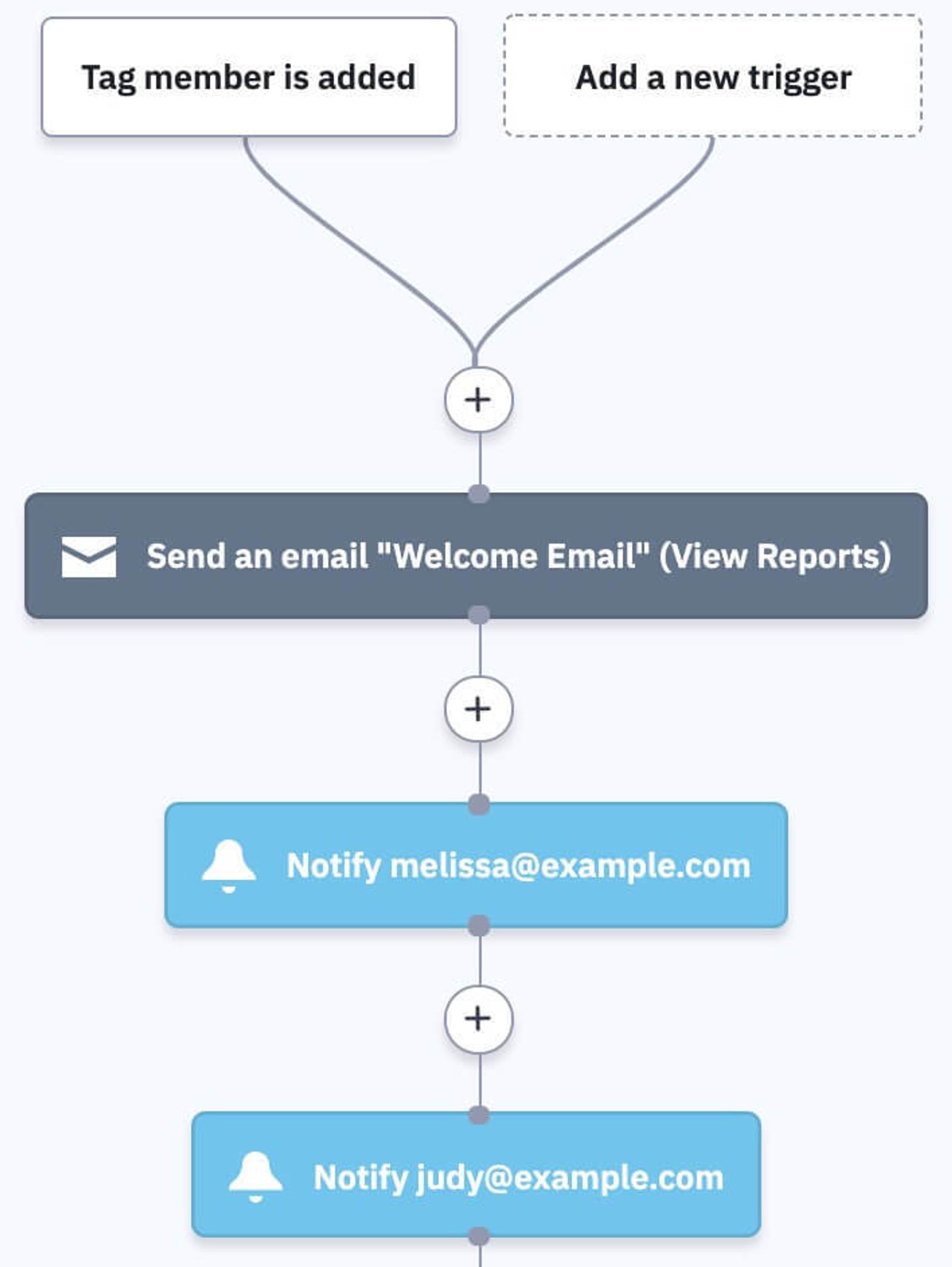 Wenn ein neues Mitglied beitritt, wird Love benachrichtigt, um ihm eine persönliche Videobotschaft über die Bonjoro-App-Verknüpfung zu senden, und ihr Community-Manager wird benachrichtigt, um ihm ein Willkommensgeschenk zu schicken. Wenn sich ein Mitglied in letzter Zeit nicht in den Kurs eingeloggt hat, wird eine automatische E-Mail von Love verschickt, um sich bei dem Kunden zu melden.