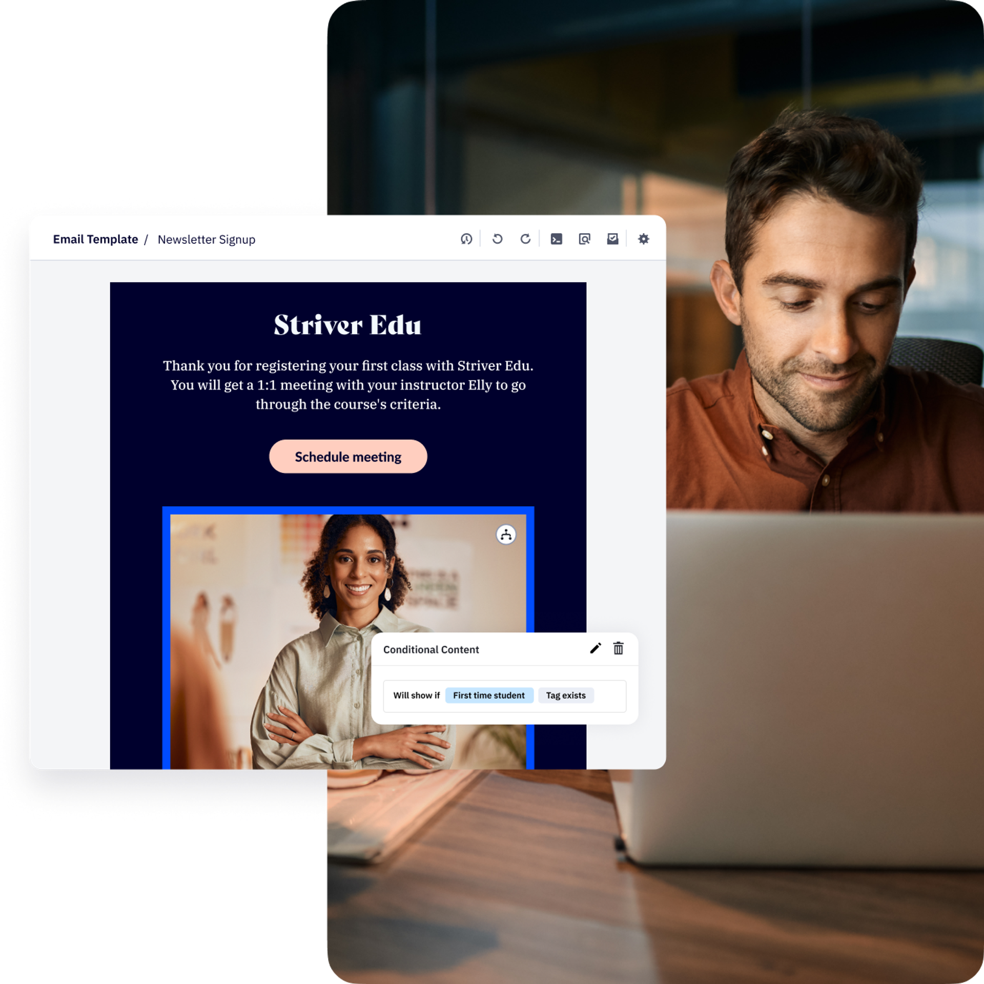 Nutzen Sie dynamische und vorausschauende Inhaltsoptionen, um sicherzustellen, dass Ihre Lernenden die richtigen Überschriften, Bilder und Handlungsaufforderungen in ihren E-Mails erhalten.