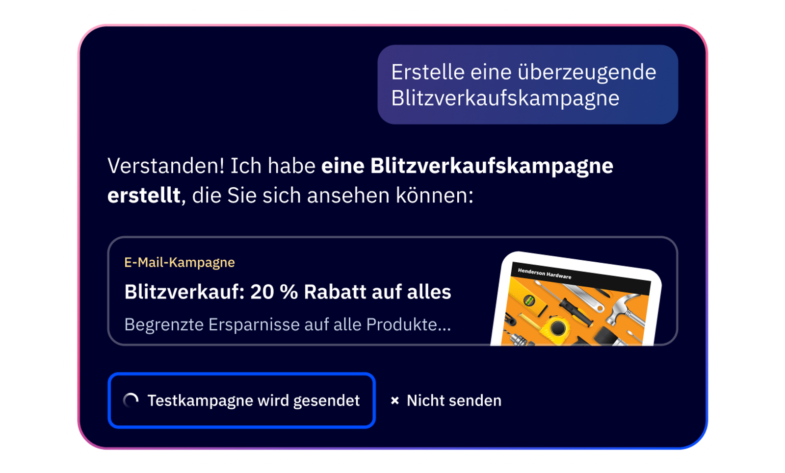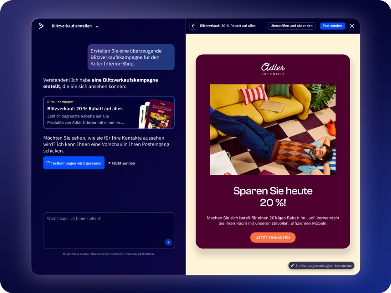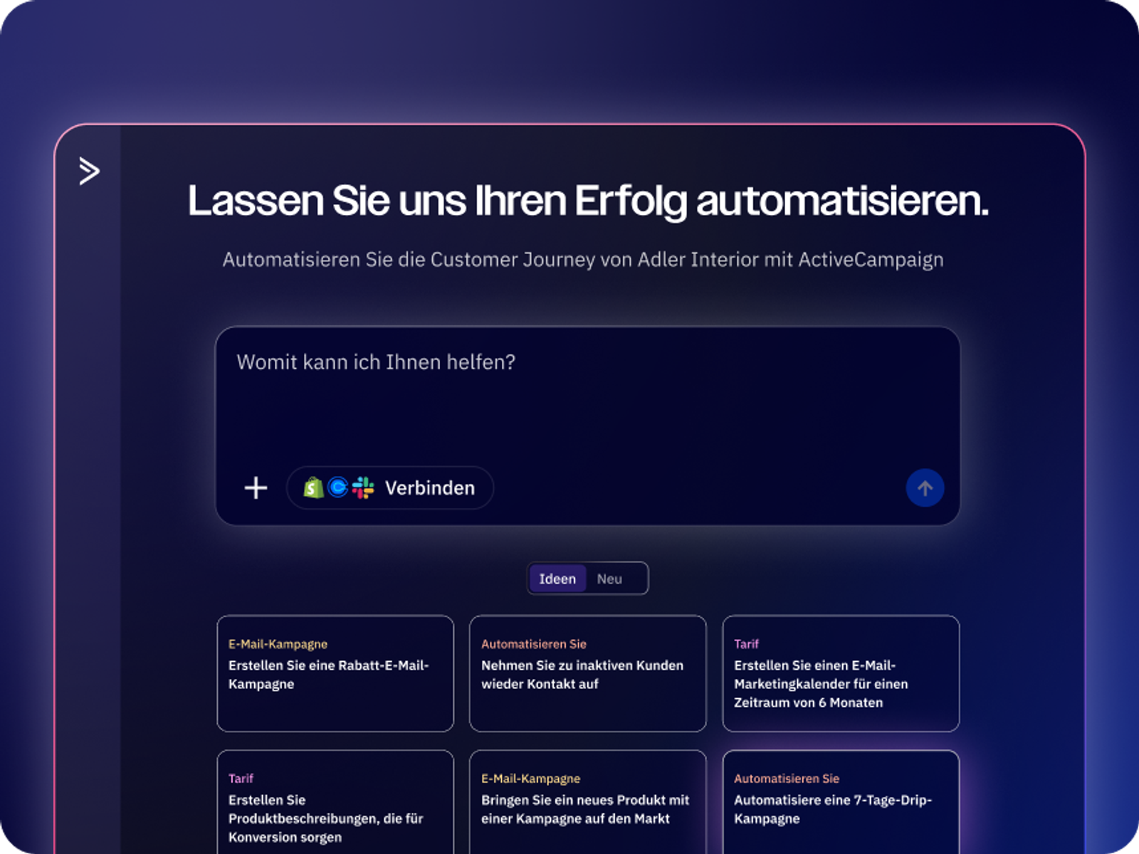 Erstellen Sie mit einer einfachen Eingabeaufforderung sofort eine vollständige, markengerechte Kampagne.