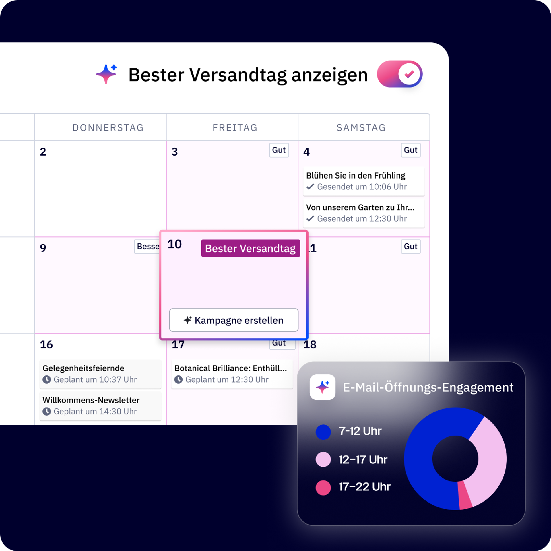 Planen, terminieren und optimieren Sie Kampagnen mit KI-gesteuertem Timing und Erkenntnissen.