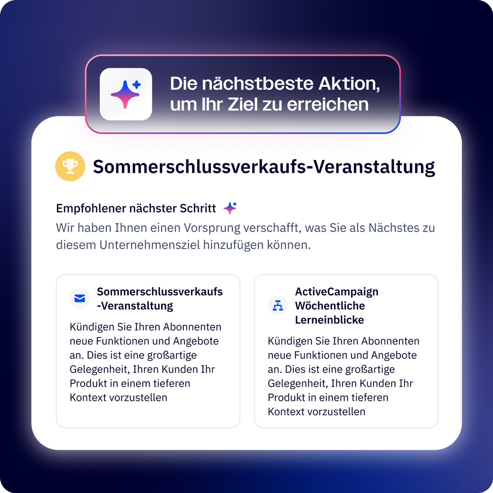 Generieren Sie relevante Ziele basierend auf dem, was für Ihr Unternehmen am wichtigsten ist, damit Sie immer Ihren nächsten Schritt finden können.