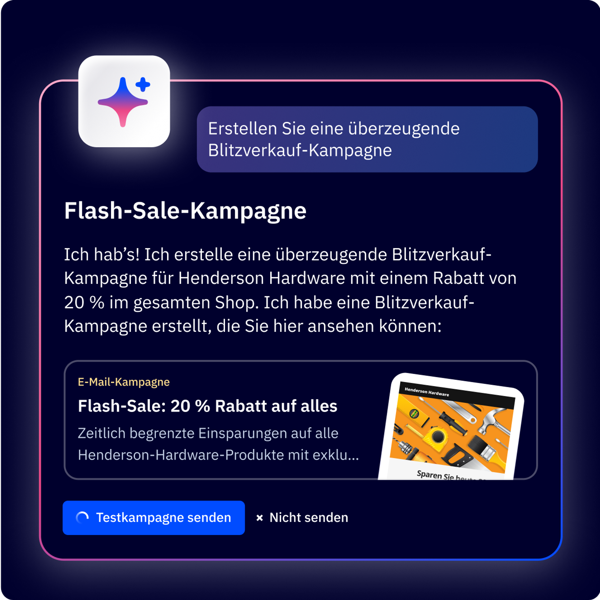 KI-Agenten erstellen vollständig realisierte Kampagnen, personalisierte Inhalte, segmentierte Listen und Crosschannel-Automationen, die mit einem Klick einsatzbereit sind.