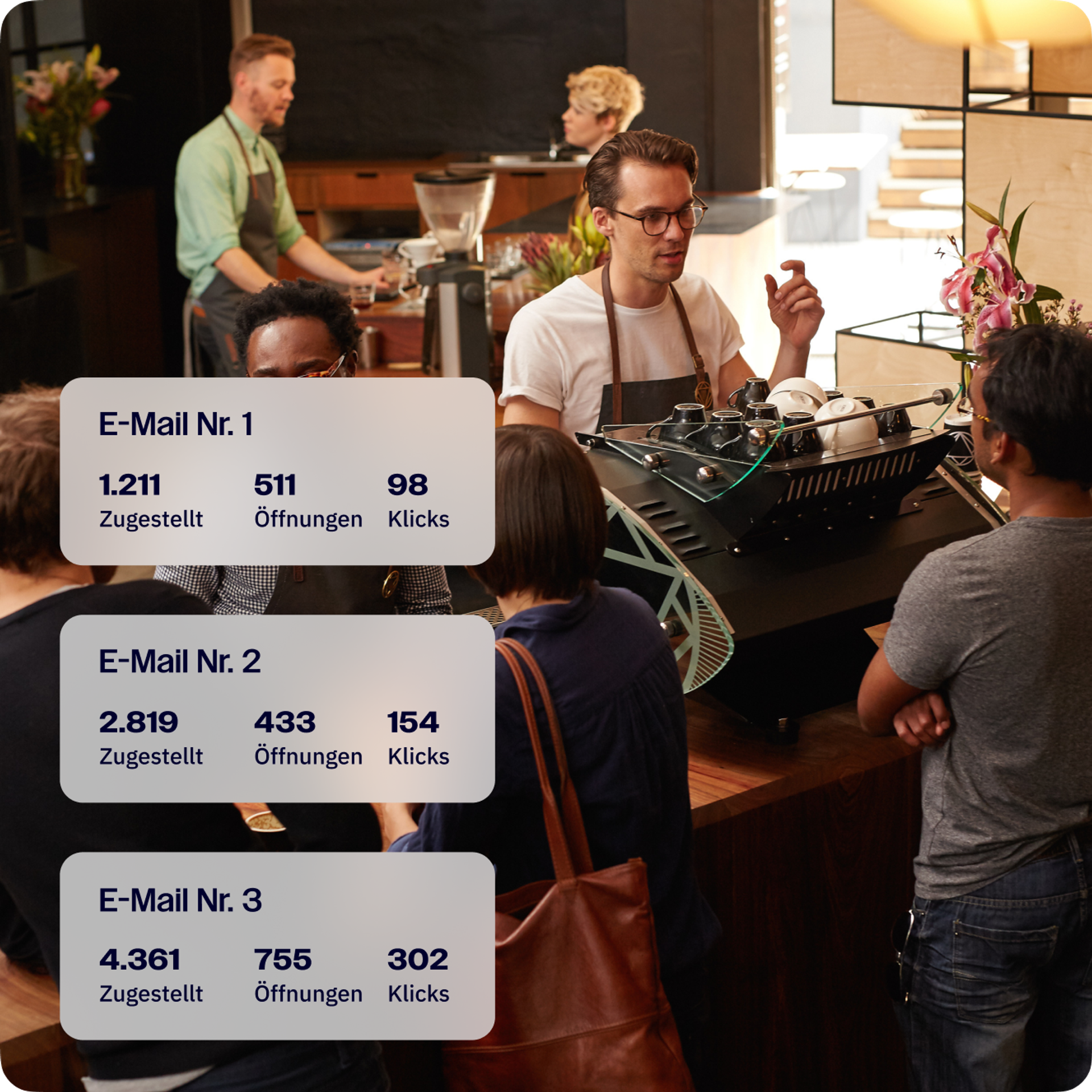 Testen Sie Ihre Kampagnen nicht nur mit A/B-Tests – sondern mit A/B/C/D/E-Tests. Nutzen Sie unser fortschrittliches Split-Testing, um bis zu fünf E-Mails gleichzeitig zu vergleichen und die beste Formel zu finden.