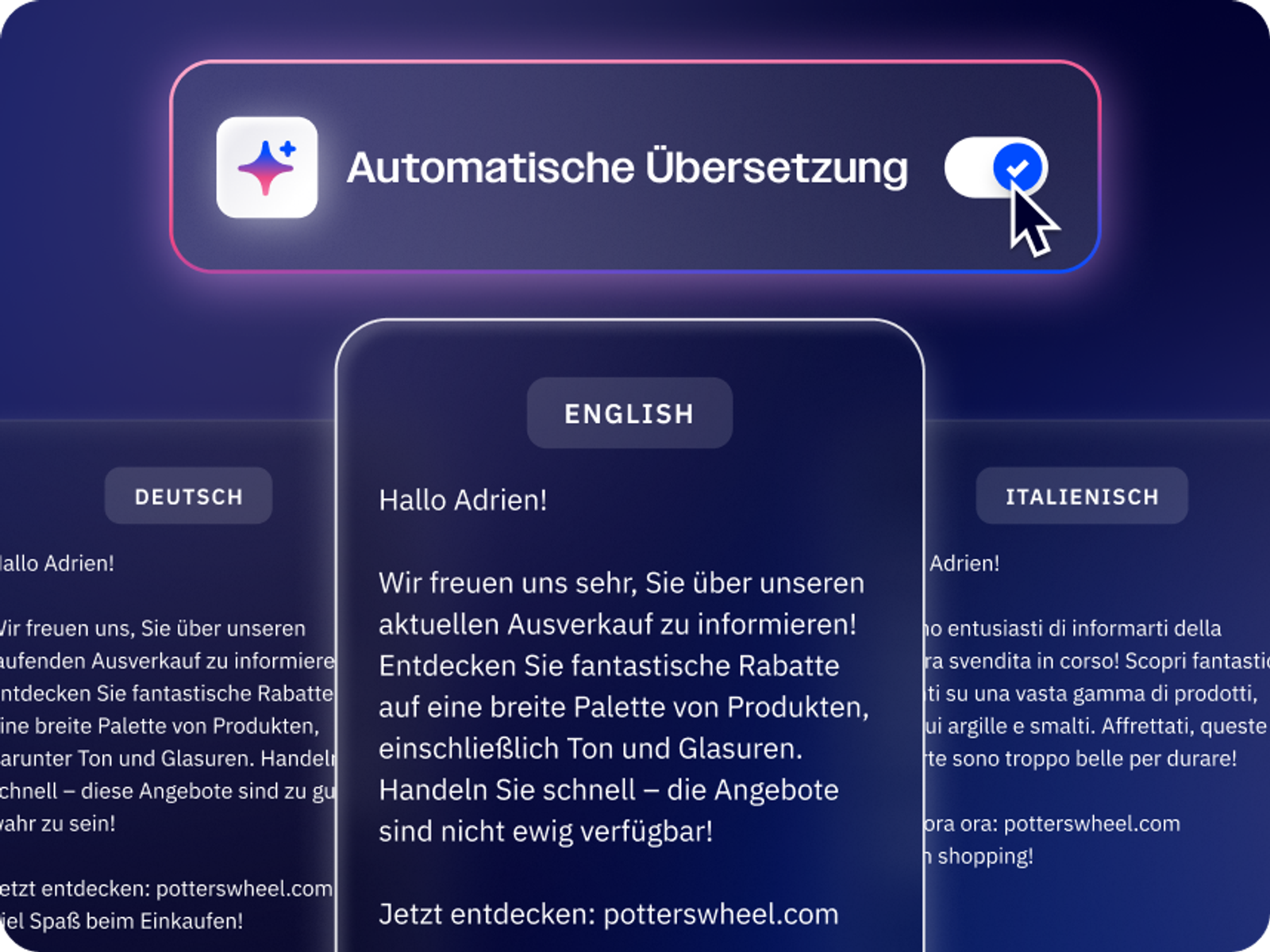 Verwandeln Sie eine einzige E-Mail sofort in mehrsprachige Kampagnen für eine globale Zielgruppe.