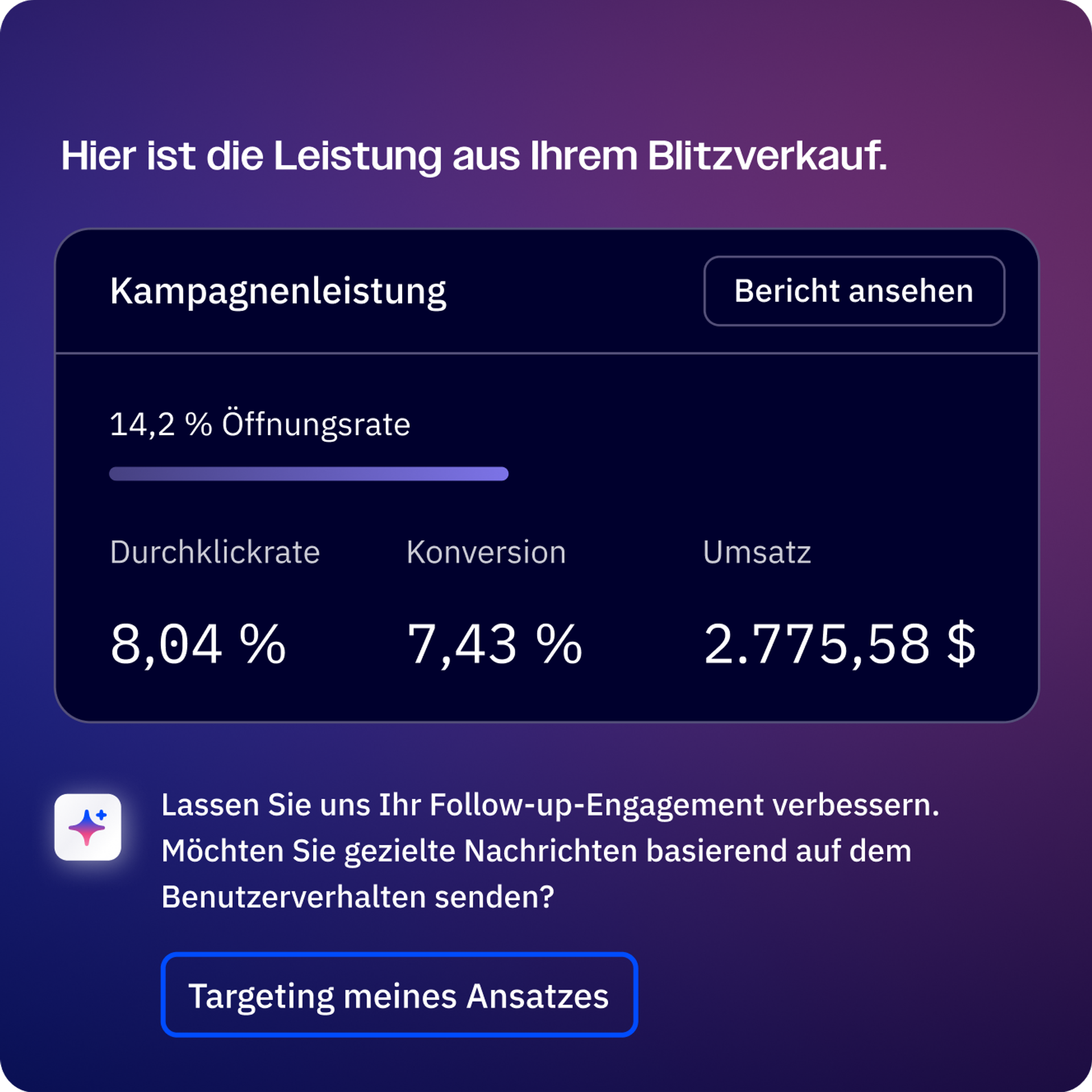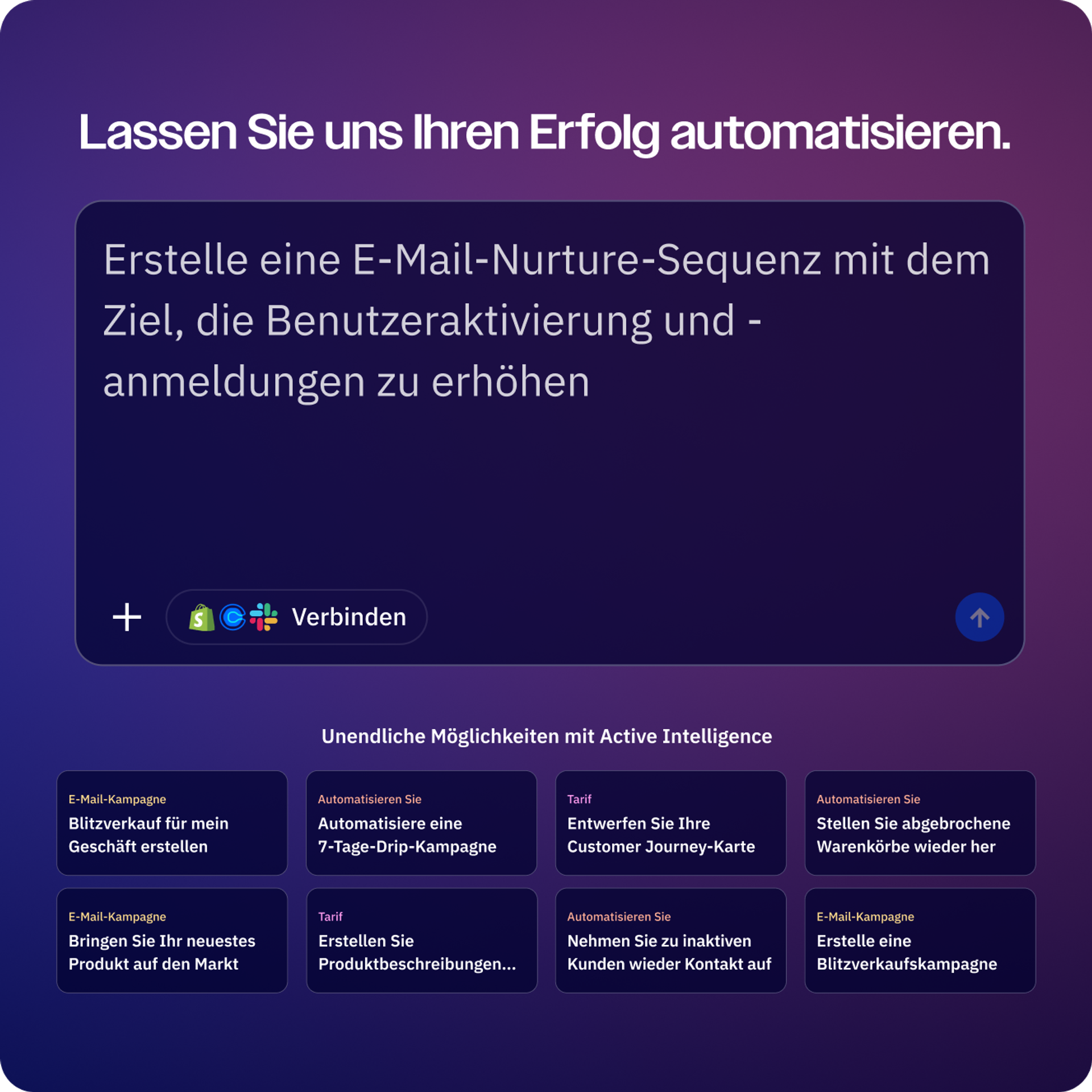 Unsere KI-Agenten sind so konzipiert, dass sie Ihr Marketing eigenständig verwalten – von der Erstellung von Inhalten über die Segmentierung bis hin zur Echtzeit-Automation und Berichterstellung. Jeder von ihnen ist fokussiert, anpassbar und bereit, das zu skalieren, was über jeden Kanal funktioniert.