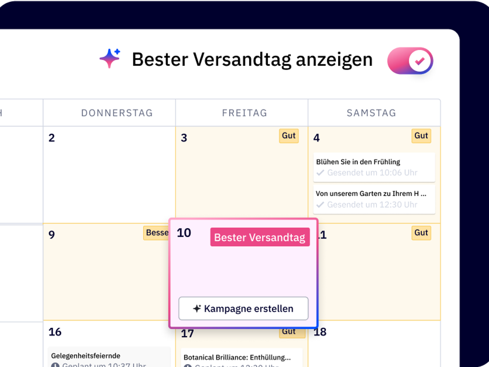 Planen, terminieren und optimieren Sie Kampagnen mit KI-gesteuertem Timing und Erkenntnissen.