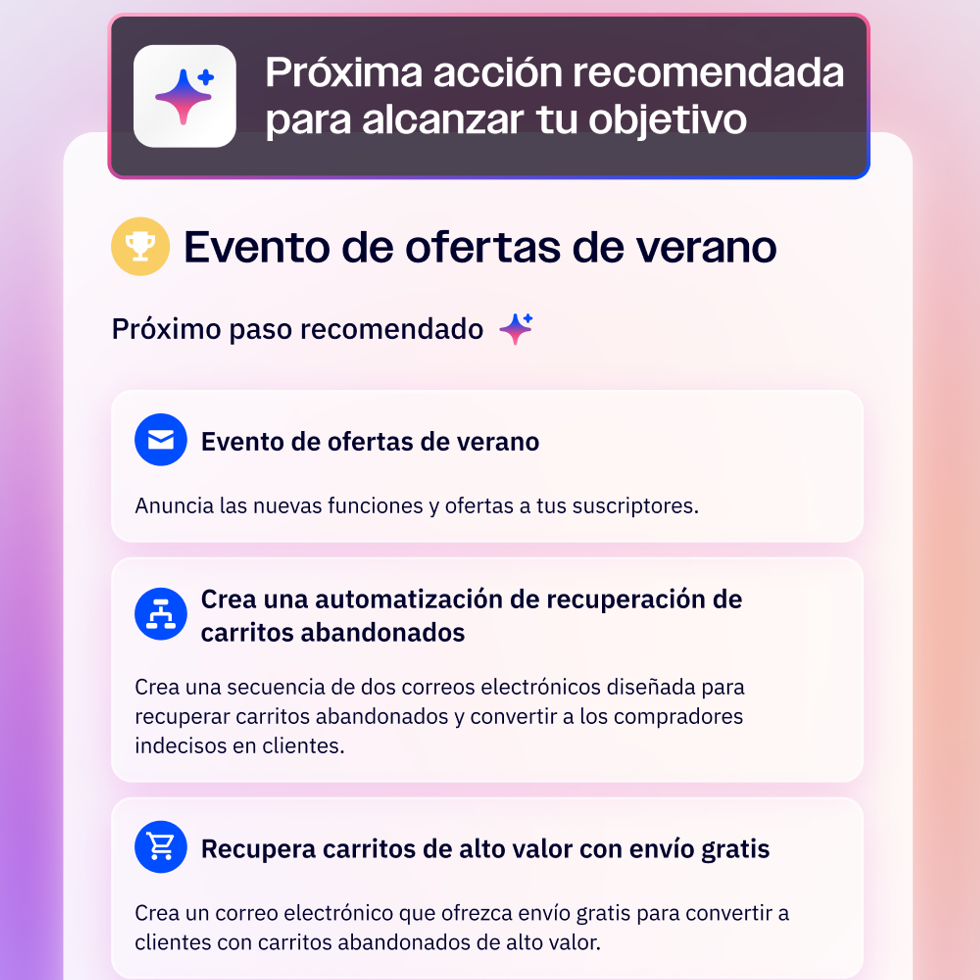 La automatización de marketing ejecuta lo que tú creas. El marketing autónomo crea lo que necesitas. Define tus objetivos y observa cómo Active Intelligence crea un marketing innovador para ti.