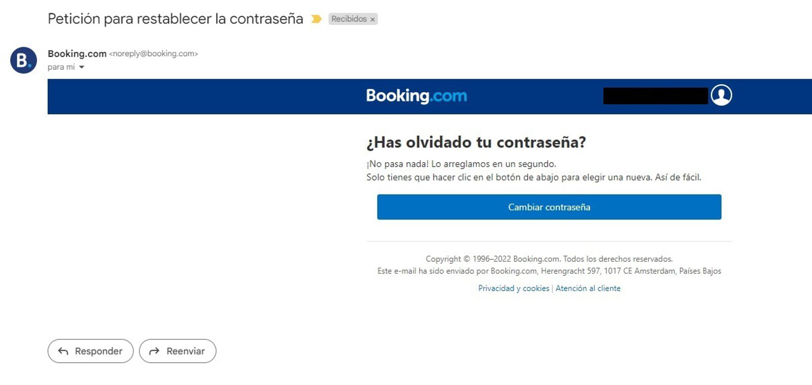 Este correo electrónico de Booking es un buen ejemplo de cómo enfocar este tipo de emails transaccionales. El tono es informal y el mensaje que transmite hace que la persona no se sienta mal por haber olvidado la contraseña: «¡No pasa nada! Lo arreglamos en un segundo». Es un email conciso y que va al grano.