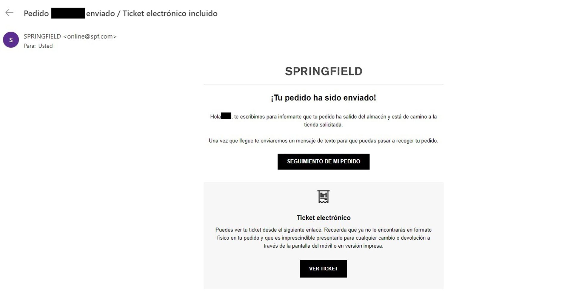 Puedes aprovechar, tal como hace Springfield en este ejemplo, para añadir otra información o documentos relacionados con el producto, como, por ejemplo, el ticket electrónico.