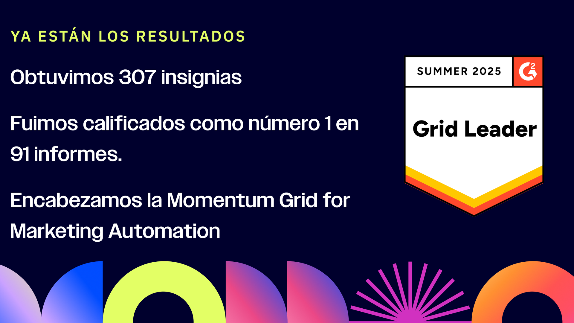 G2 es el mercado de software más grande y confiable del mundo. Más de 100 millones de personas recurren a G2 cada año para tomar decisiones de software más inteligentes, impulsadas por auténticas reseñas de colegas. Estos reconocimientos reflejan las sugerencias y experiencias reales de nuestros clientes, y estamos increíblemente orgullosos de ver que esta satisfacción abarca las herramientas que más les interesan a los profesionales del marketing y equipos en crecimiento.