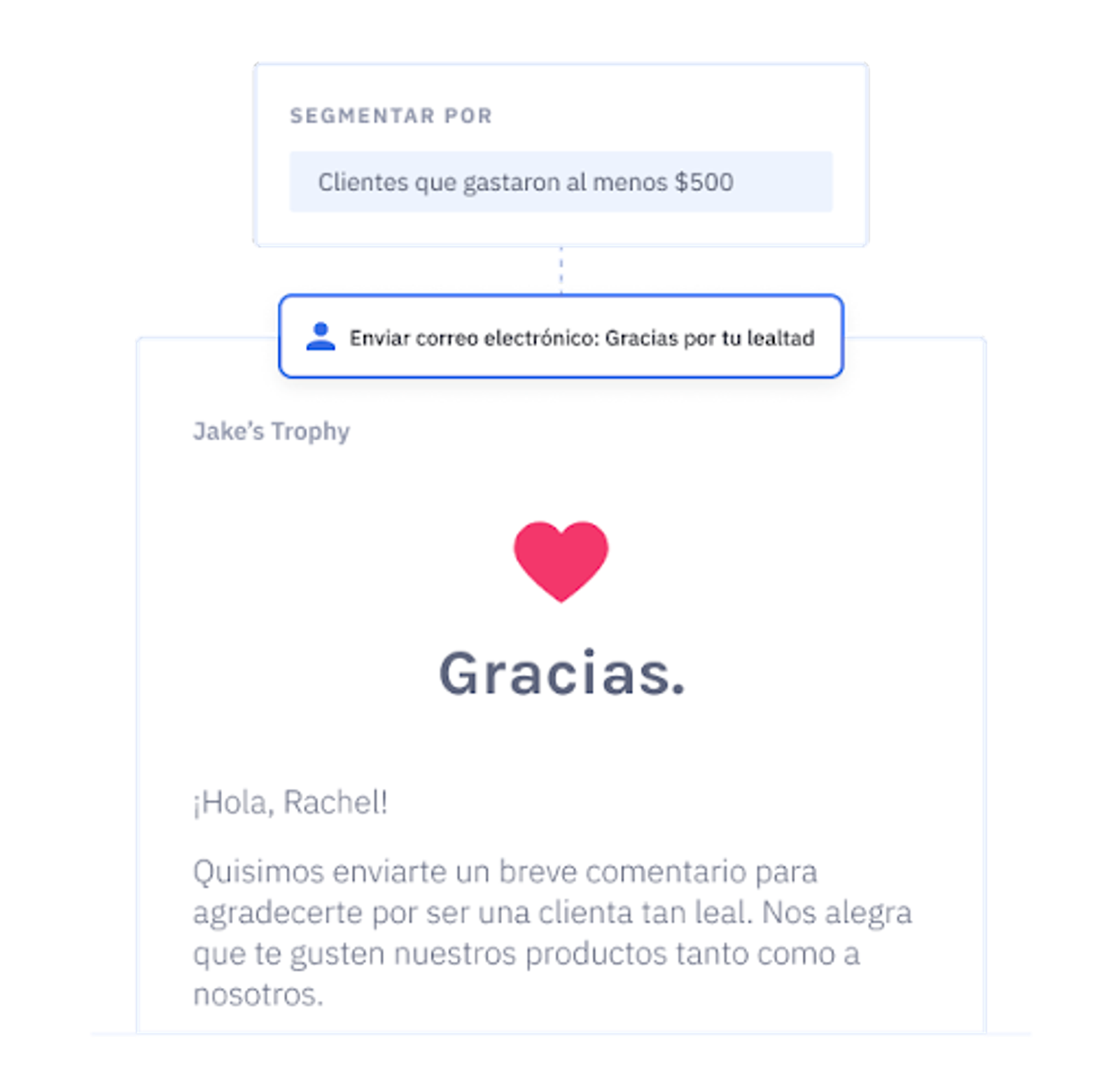 Por ejemplo, agrupa a tus contactos de la base de datos según las compras que hayan hecho en el pasado o los enlaces en los que hayan clicado en correos electrónicos enviados.
