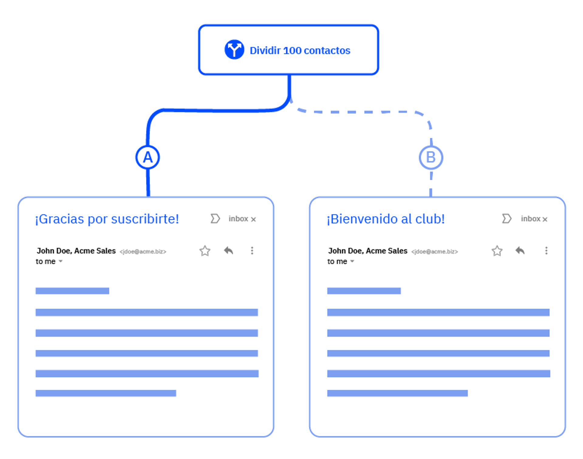 Te recomendamos hacer varias pruebas para determinar qué funciona mejor en tus correos electrónicos. Para ello, puedes crear un test A/B y enviar distintas versiones de un mismo correo electrónico para medir cuál funciona mejor entre tus contactos.
