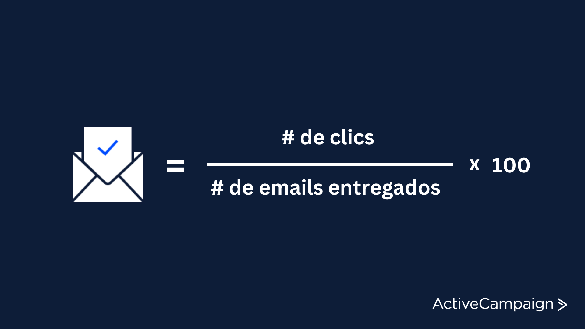 En este caso, para calcular el CTR, la fórmula consiste en dividir el número de clics del enlace entre el número de correos electrónicos entregados y multiplicar esa cifra por 100. Así, obtendrás el porcentaje de personas que han hecho clic en el o los enlaces del correo electrónico que has enviado.