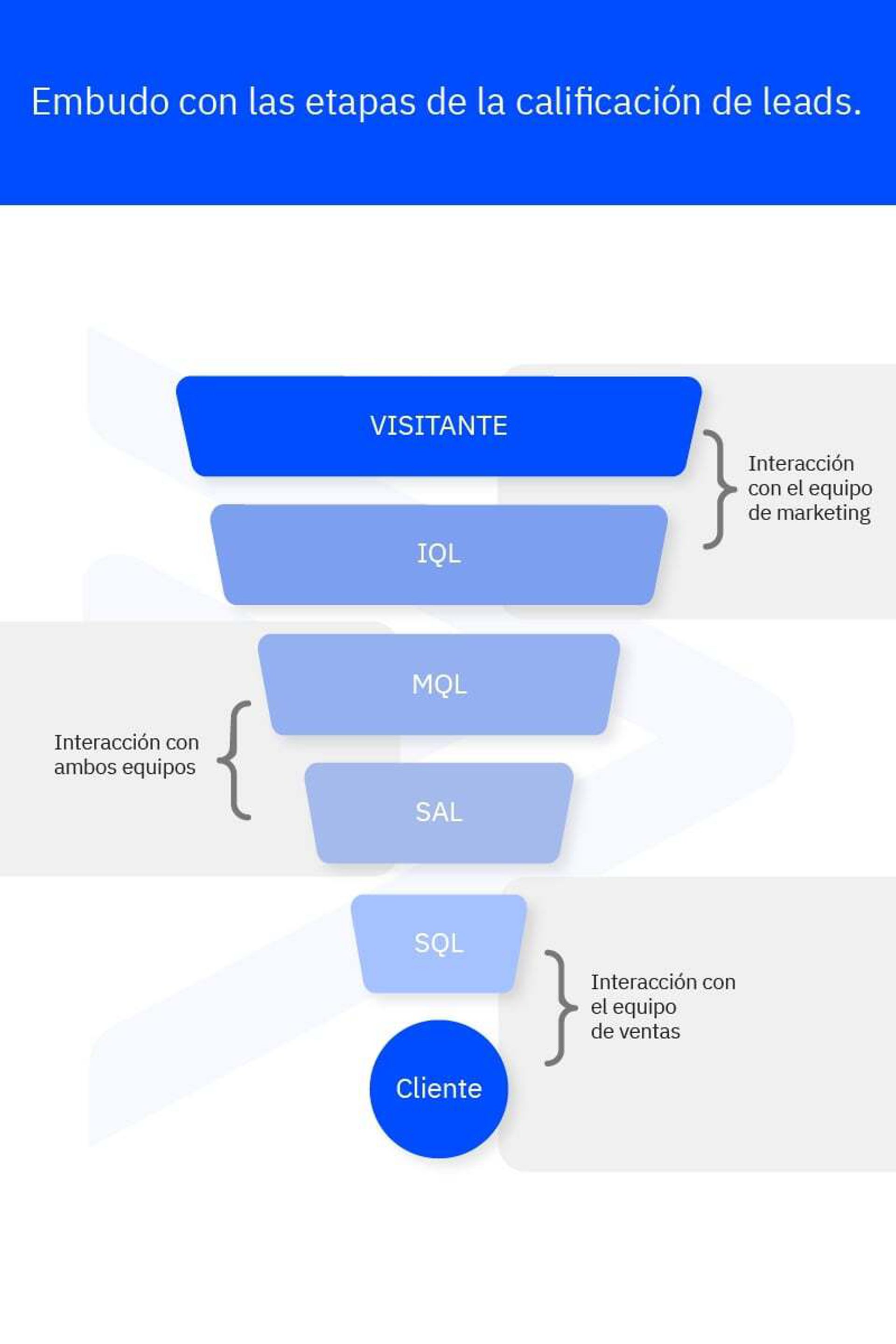 - Puedes segmentar mejor tu base de datos. A medida que tu base de datos crece, se vuelve imposible saber en qué etapa del embudo de ventas está cada uno de tus contactos. Gracias a la calificación de leads, es posible clasificar a cada uno de estos contactos en diferentes perfiles y etapas (IQL, MQL, SAL, SQL, etc.).