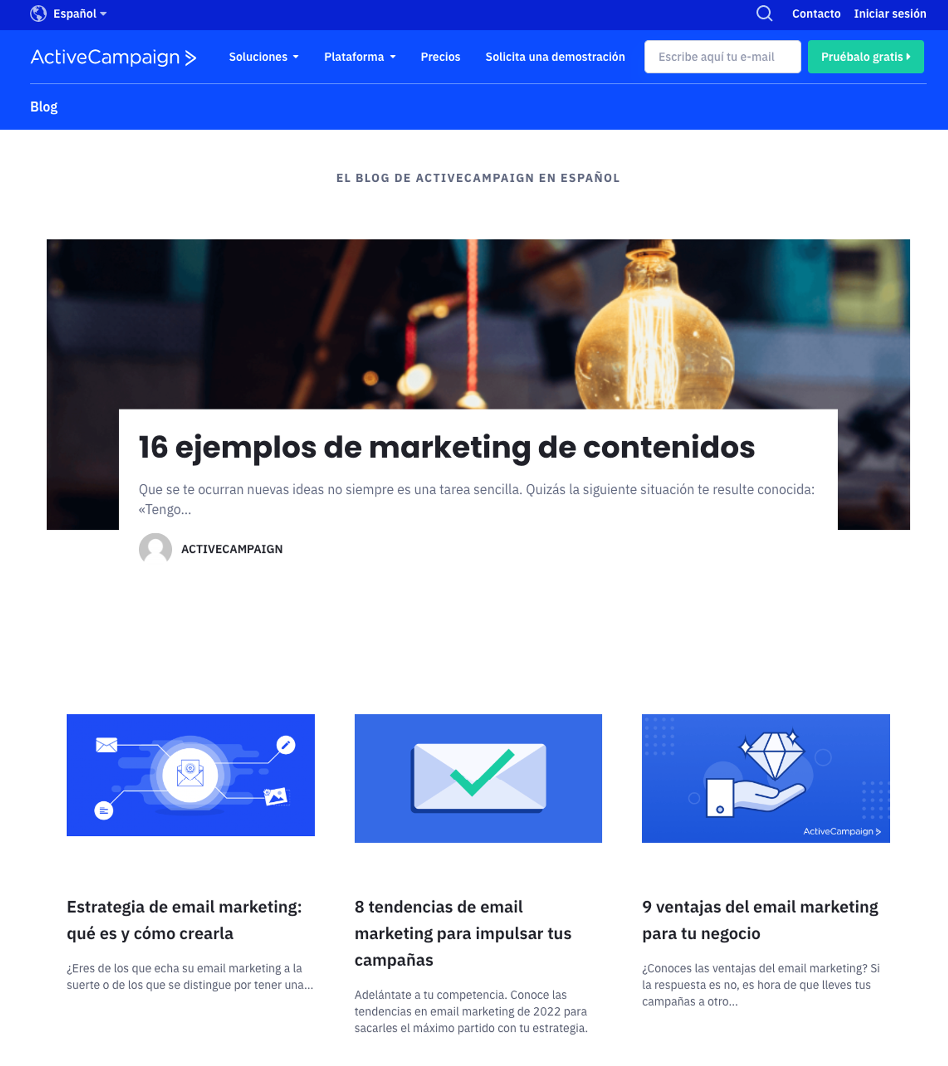 El blog de ActiveCampaign está disponible en varios idiomas para ayudar a profesionales del marketing y responsables de negocio a resolver sus dudas sobre marketing y marketing automation. Fuente: Blog en español de ActiveCampaign.