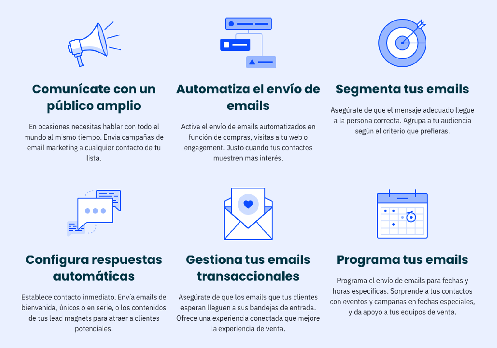 Por ejemplo, no es lo mismo enviar emails de bienvenida a personas que han asistido a una presentación en vivo de tu software y se han dado de alta como usuarios que a personas que se han suscrito a tu newsletter tras leer un artículo de tu blog.
