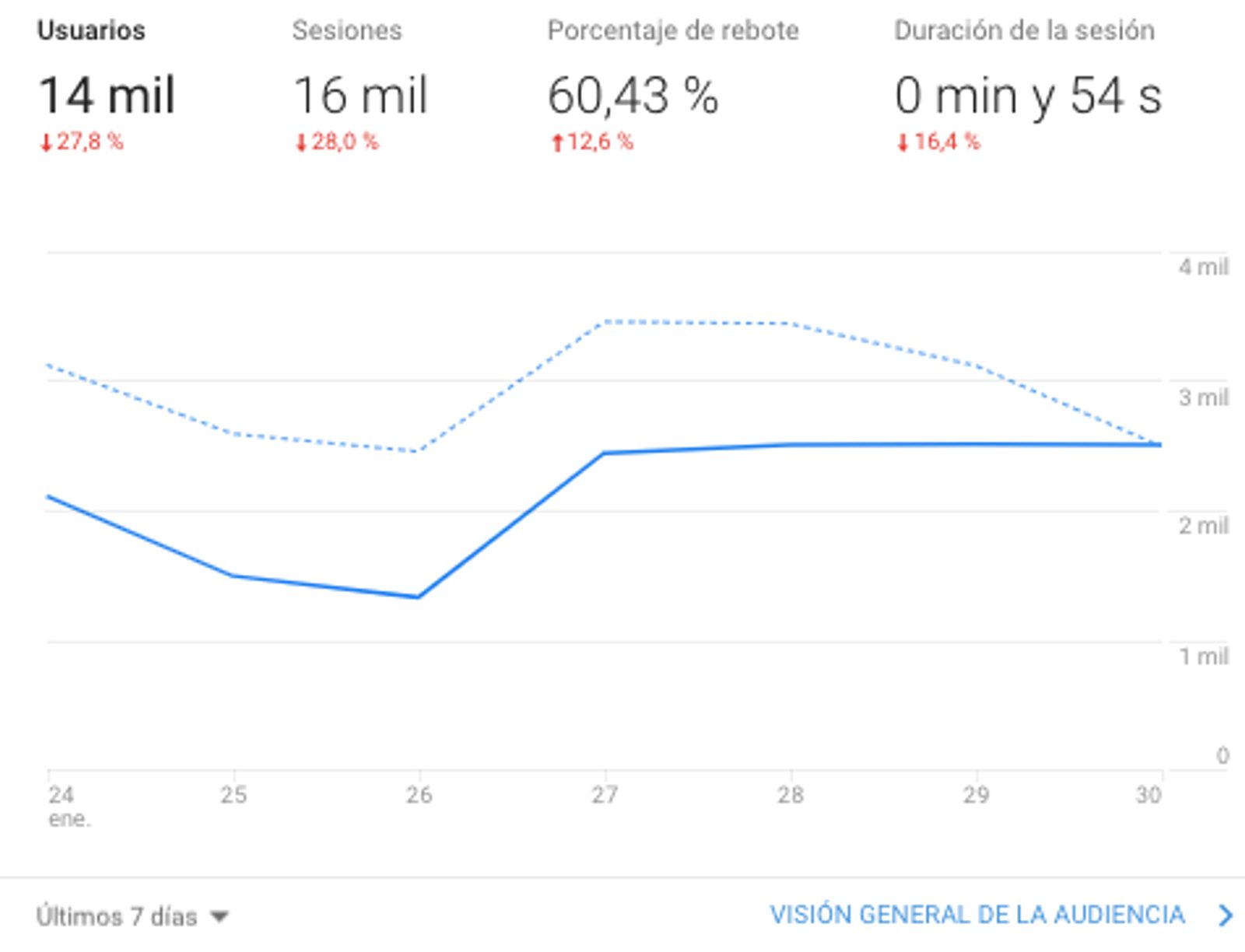 - ¿Notaste un descenso en el tráfico orgánico este mes a causa de un día festivo o un problema en el sitio web? Explícalo.