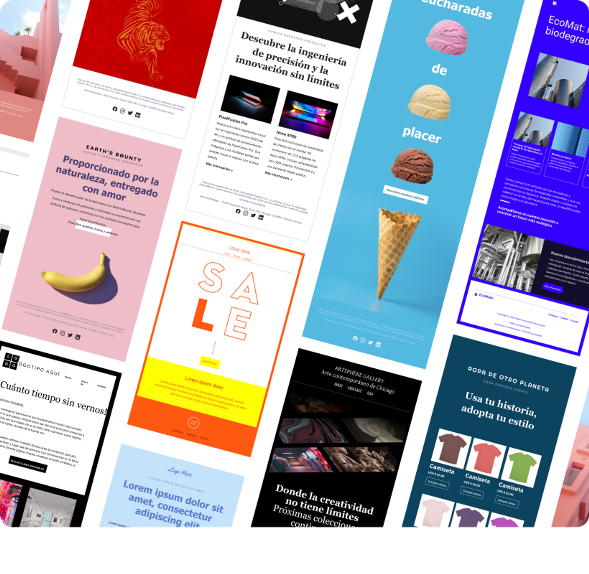 Este es un buen momento para elegir qué plantilla de correo electrónico deseas usar e incorporar a tu personalización. En nuestra plataforma, tenemos una buena selección de plantillas de correo electrónico con diseño profesional gratuitas para que elijas. Recomendamos las plantillas "Boletín de productos nuevos", "Anuncio" y "Venta de un producto único" como buen punto de partida, pero puedes usar la que veas que mejor puede funcionar.