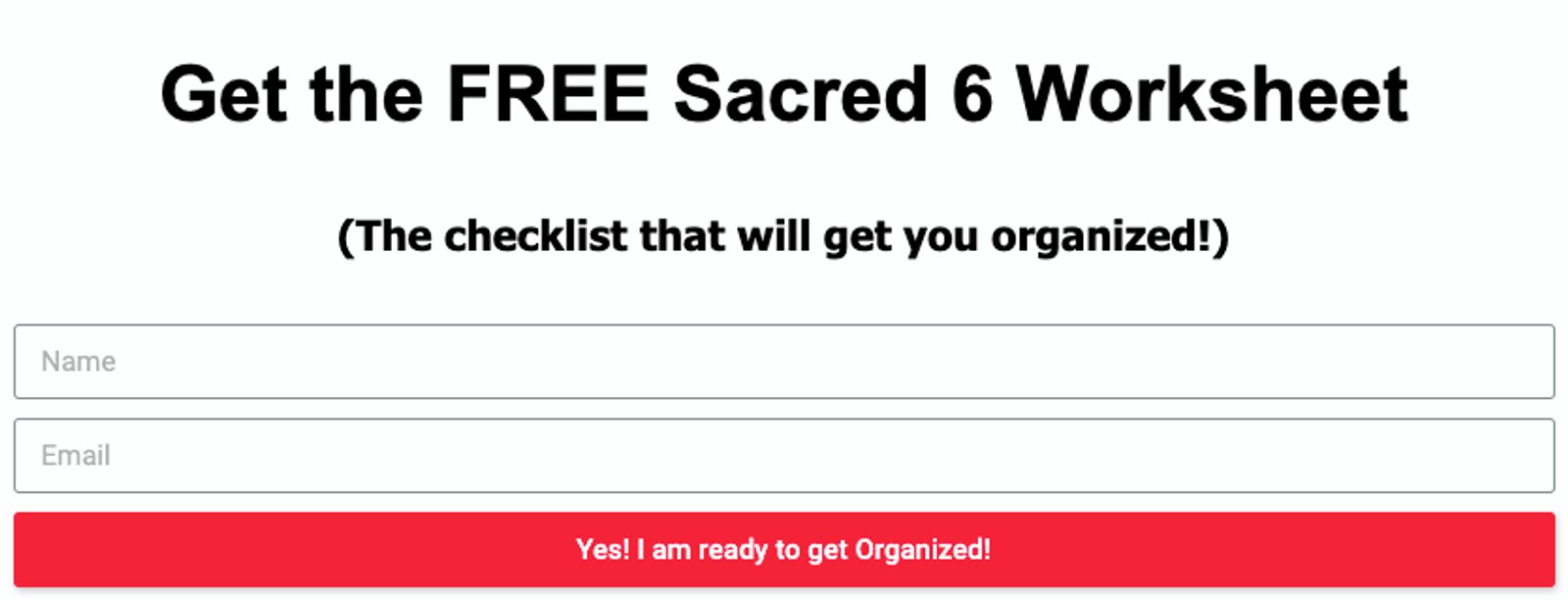 Un simple formulario en el sitio web de JB hace que le resulte sencillo enviar automáticamente su contenido gratuito a cambio de datos (y ponerse en contacto con sus seguidores). Esta es una de las estrategias que usa para la generación de leads.