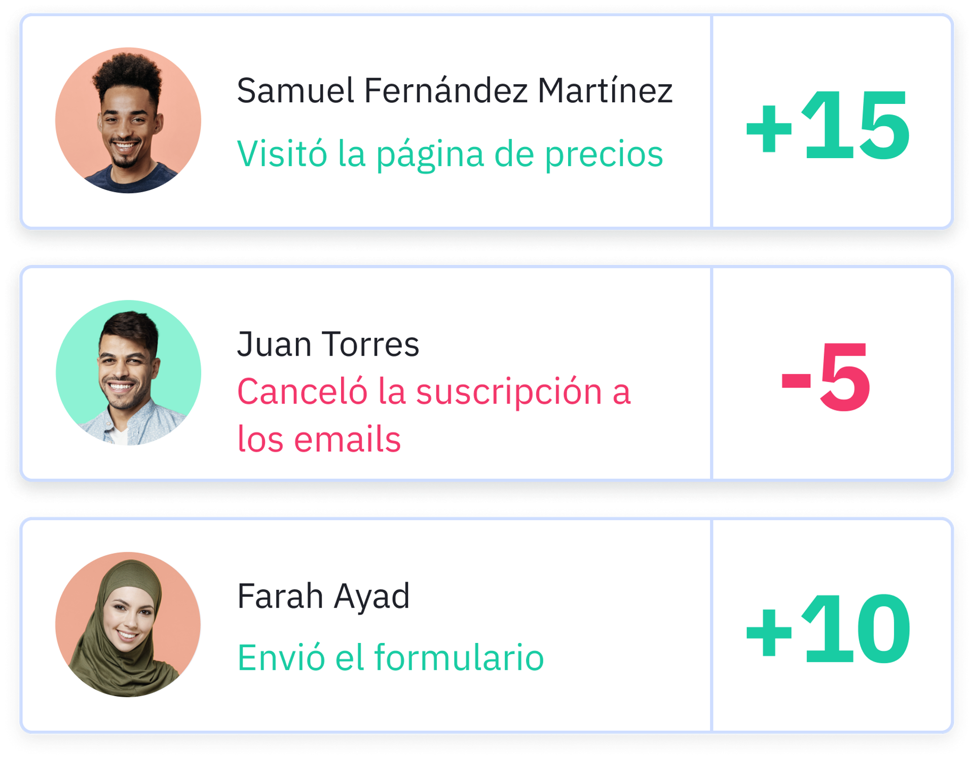 - Puntuación automática de un prospecto basada en acciones