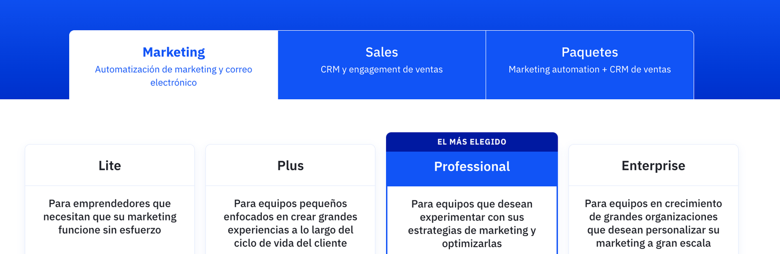 Por ejemplo, nosotros (ActiveCampaign) ofrecemos diferentes productos.