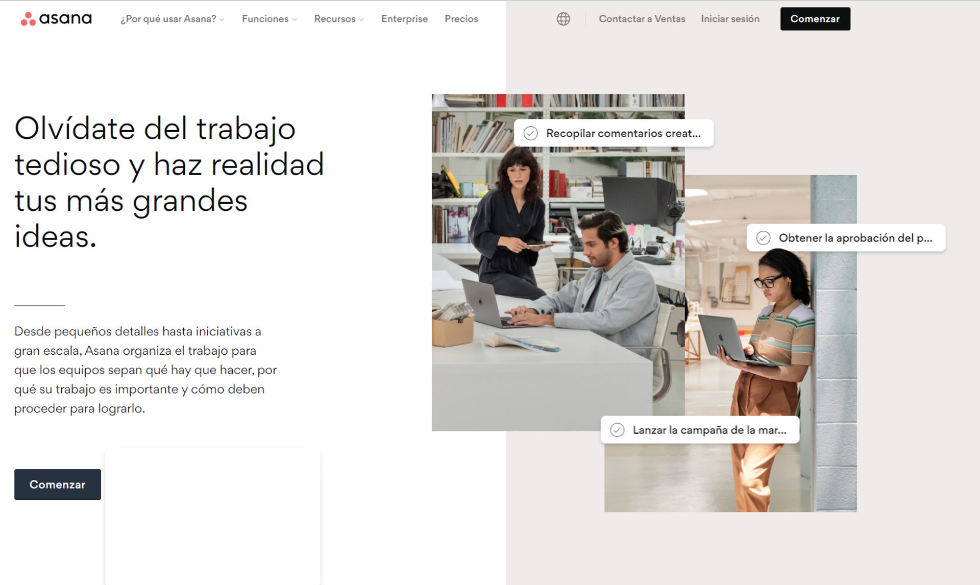 Analicemos un ejemplo de caso de estudio fuera del sector del marketing. Asana es una plataforma de gestión de proyectos que ayuda a las empresas a eficientizar sus flujos de trabajo.