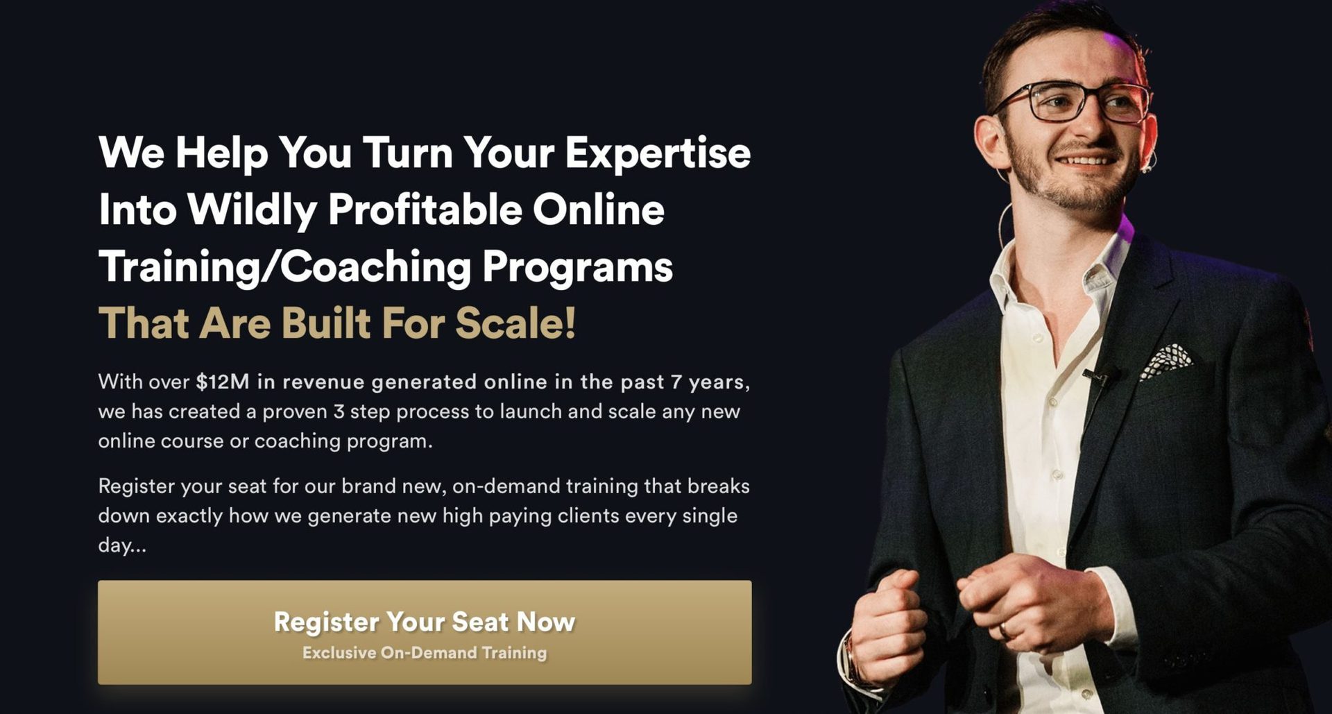 «Te ayudamos a transformar tu especialidad en programas de entrenamiento y coaching online altamente rentables». Fuente: AdClients.