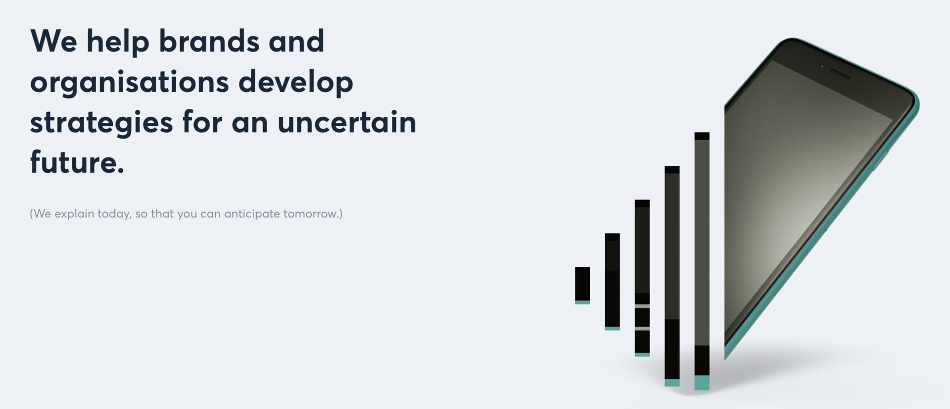 «Ayudamos a las marcas y a las organizaciones a desarrollar estrategias para un futuro incierto. Te lo explicamos hoy para que te puedas anticipar mañana». Fuente: sitio web de McCrindle.