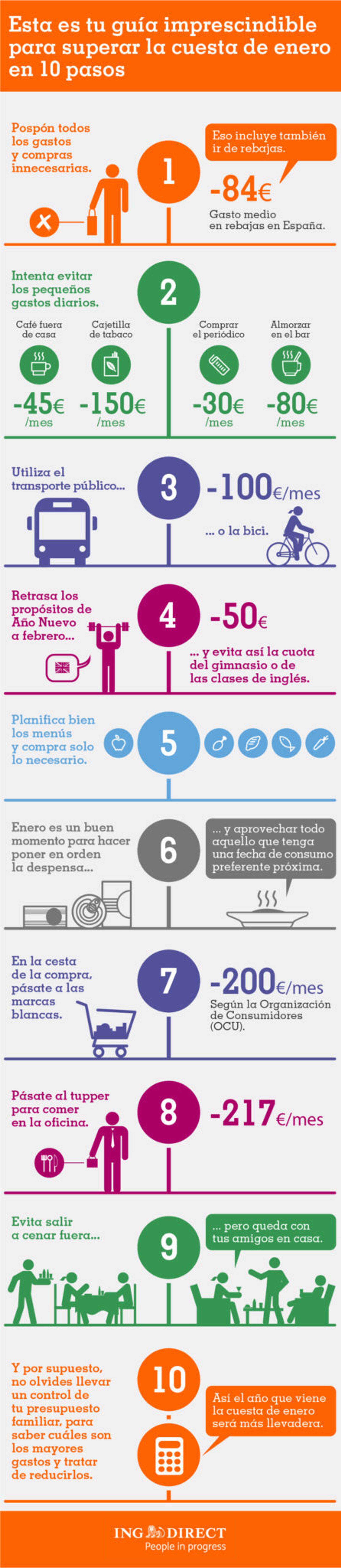 En Naranja diseñó una infografía informativa y entretenida llamada «La guía imprescindible para superar la cuesta de enero en 10 pasos». Una genialidad.