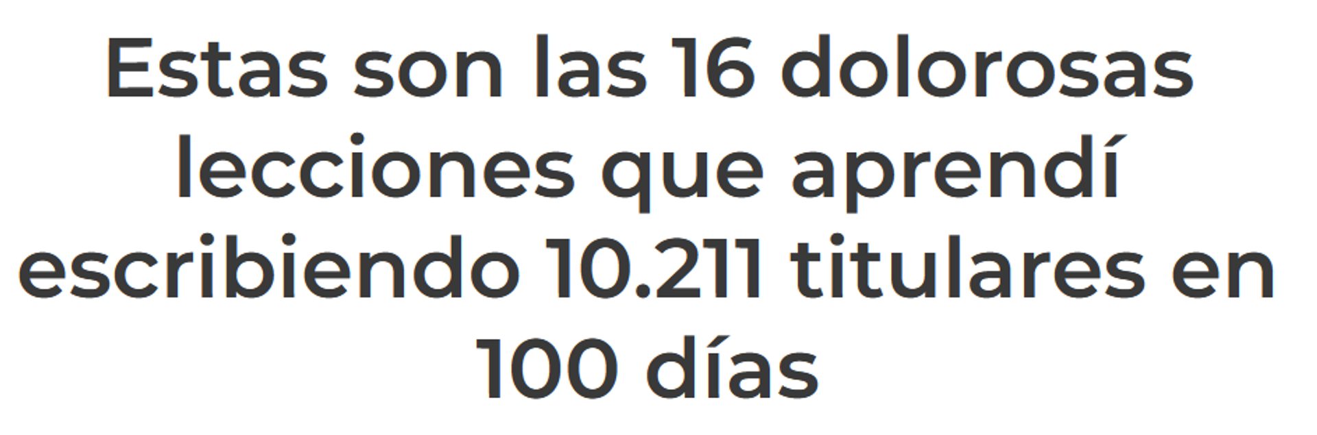 En esos casos, puede ser buena idea buscar artículos de ayuda, como el artículo de COPYHACKERS titulado «Estas son las 16 duras lecciones que aprendí escribiendo 10 211 títulos en 100 días».