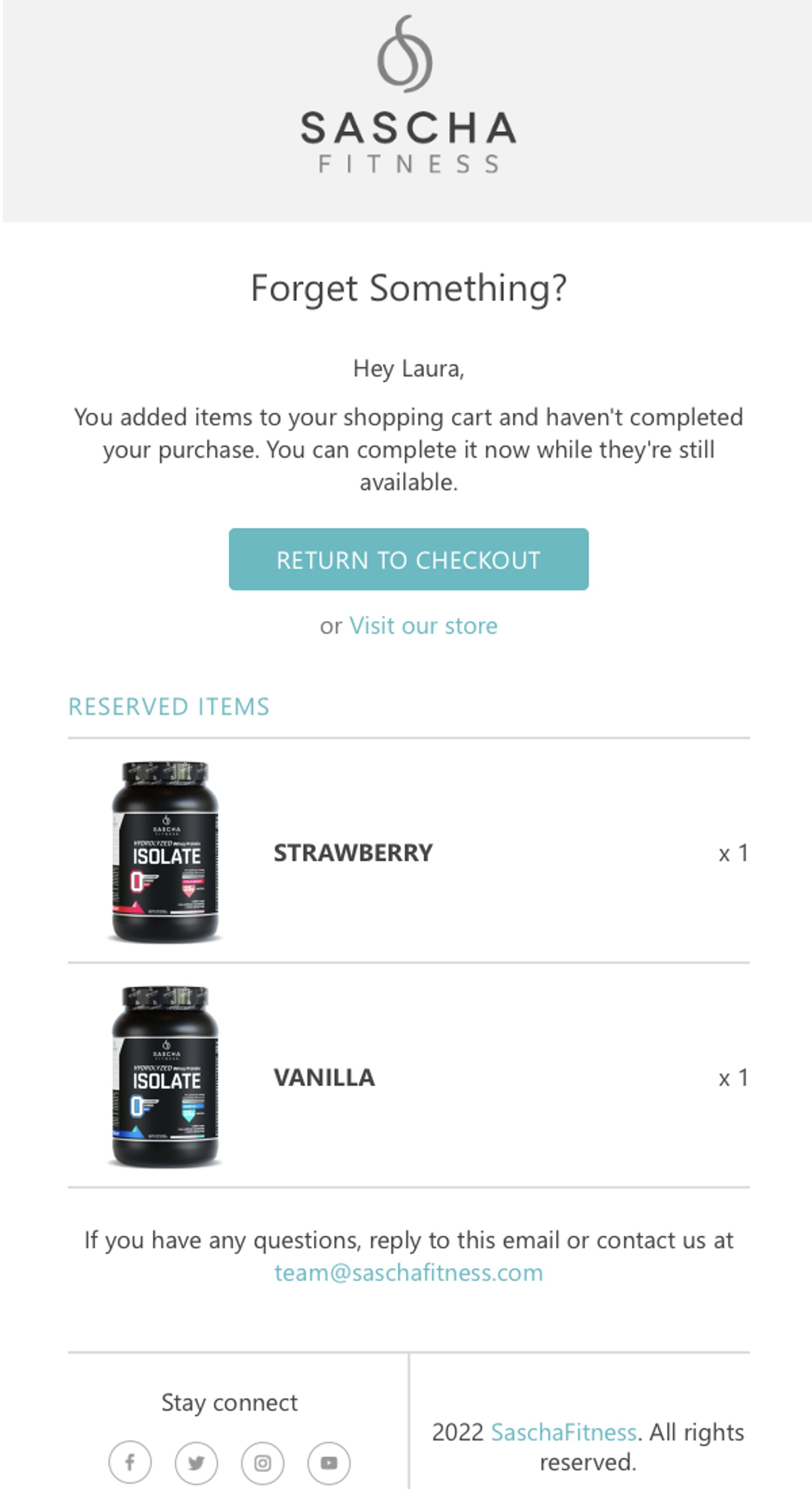 Fuente: email de carrito abandonado de Sascha Fitness.