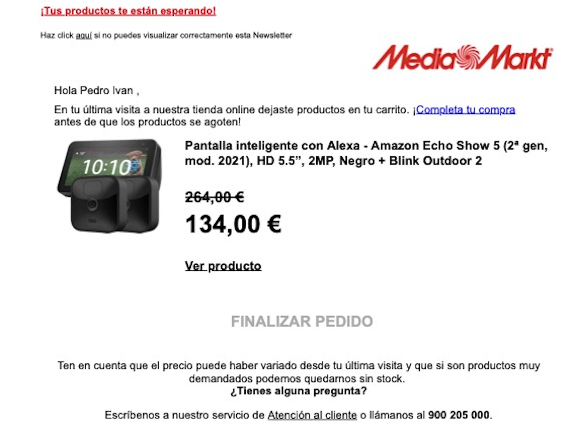 Fuente: email de carrito abandonado de Media Markt.
