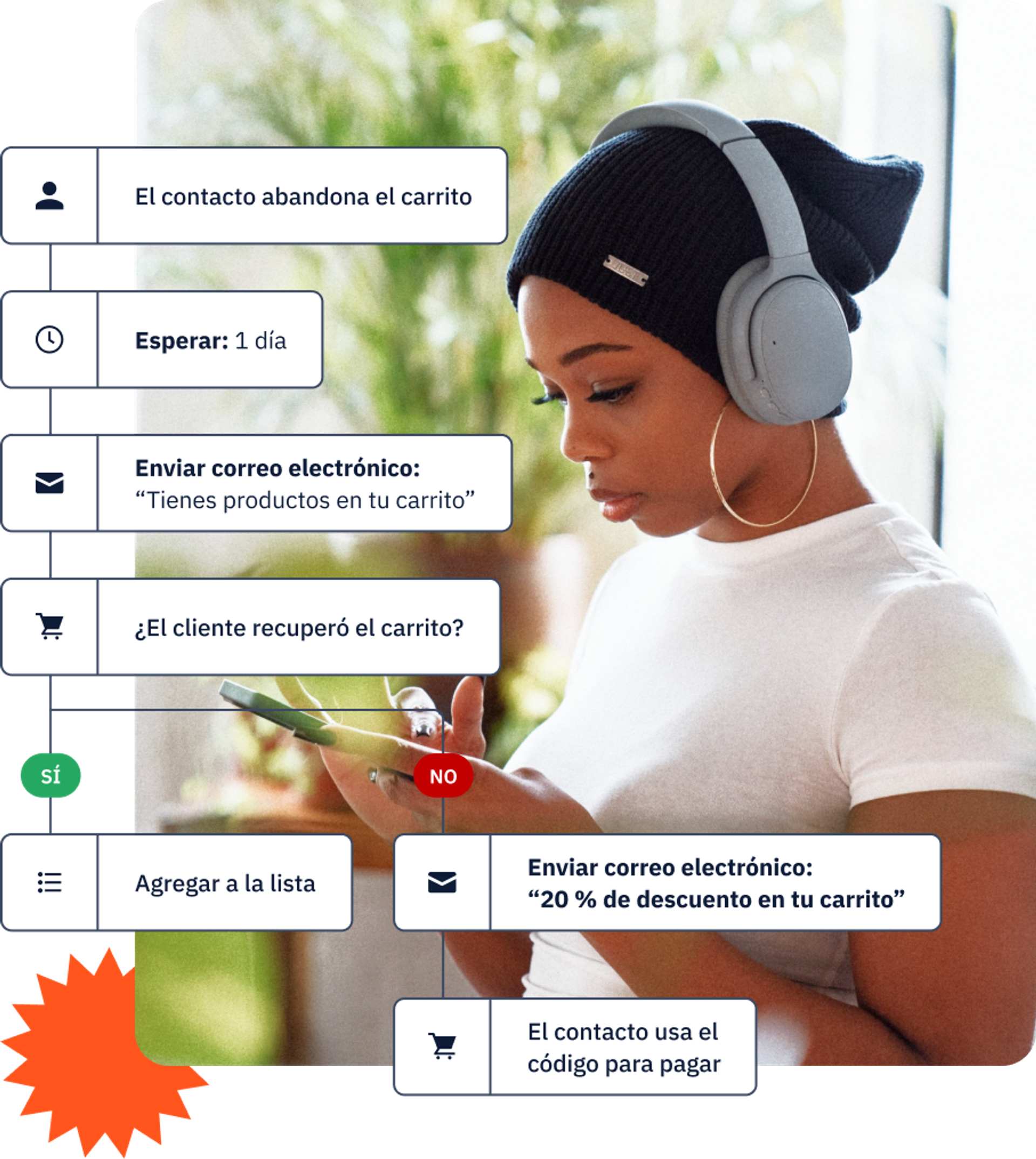 En un mundo ideal, un solo email de carrito abandonado recupera a todos los clientes de una vez. En el mundo real, tus clientes potenciales son muy diferentes entre sí y no responden al mismo mensaje de la misma manera. ¿Cómo se soluciona esta brecha? Utilizando las automatizaciones para enviar una serie de emails de recuperación de carrito.
