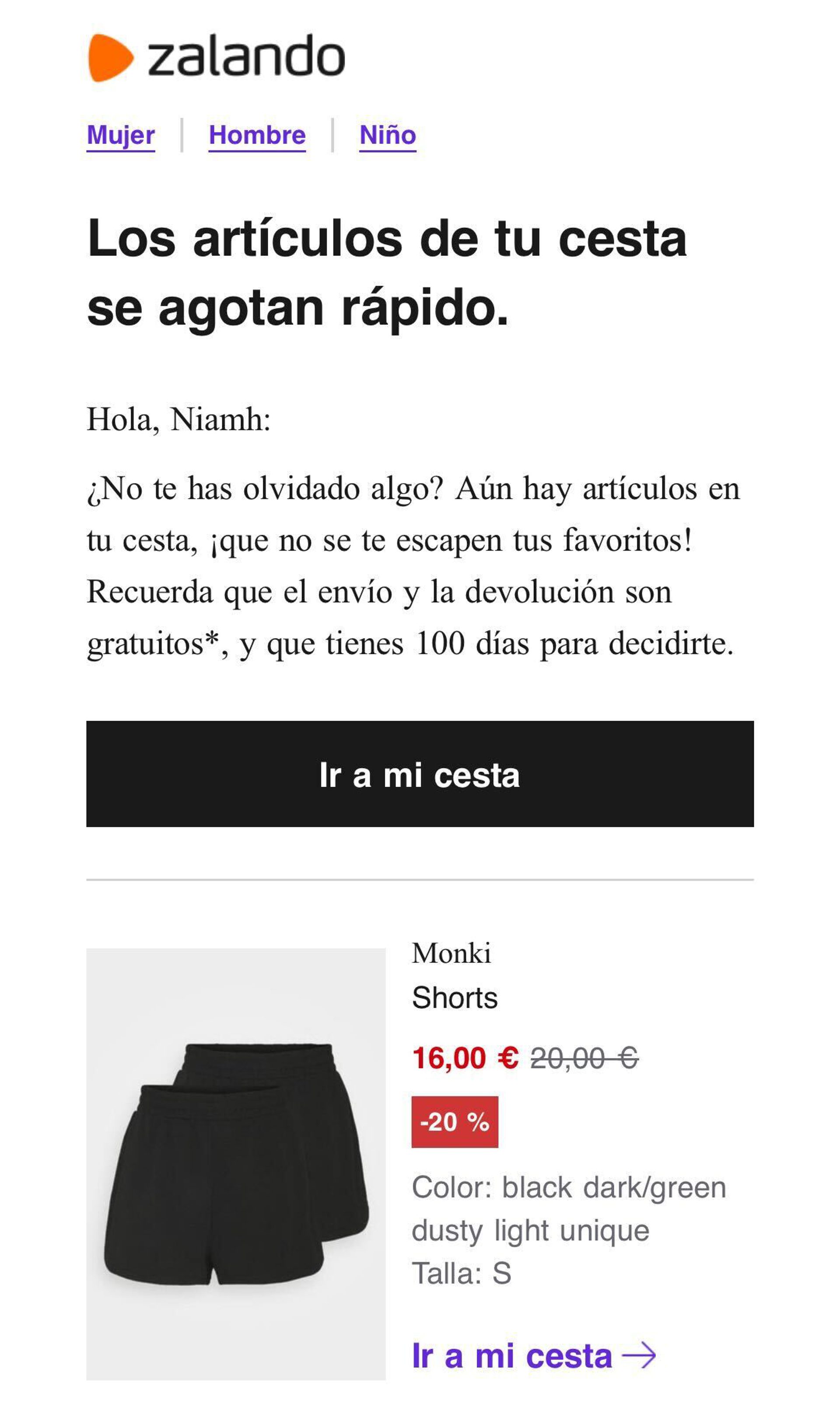 Fuente: email de carrito abandonado de H&M.