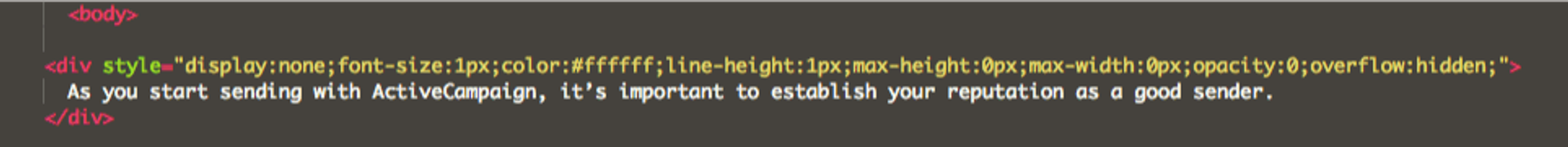 Este es un ejemplo de un estilo div oculto de un correo electrónico real que enviamos en ActiveCampaign.