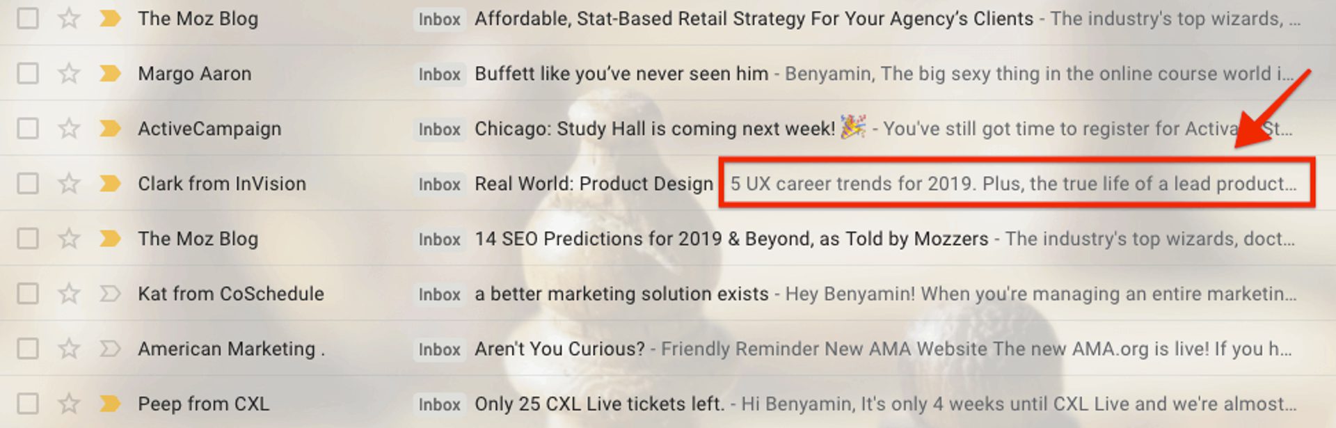Al igual que tu correo electrónico tiene una llamada a la acción, añadir una llamada a la acción en tu preencabezado de correo electrónico podría hacer que más gente los abra.