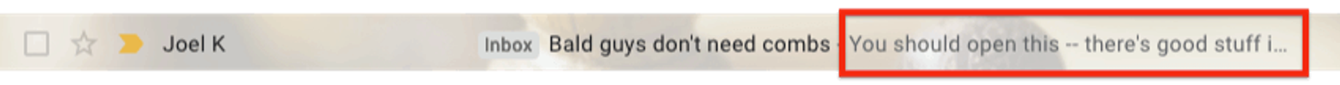 La línea de asunto probablemente tenga solo entre 30 y 75 caracteres. Con el texto del preencabezado, tienes 100 caracteres más para jugar.
