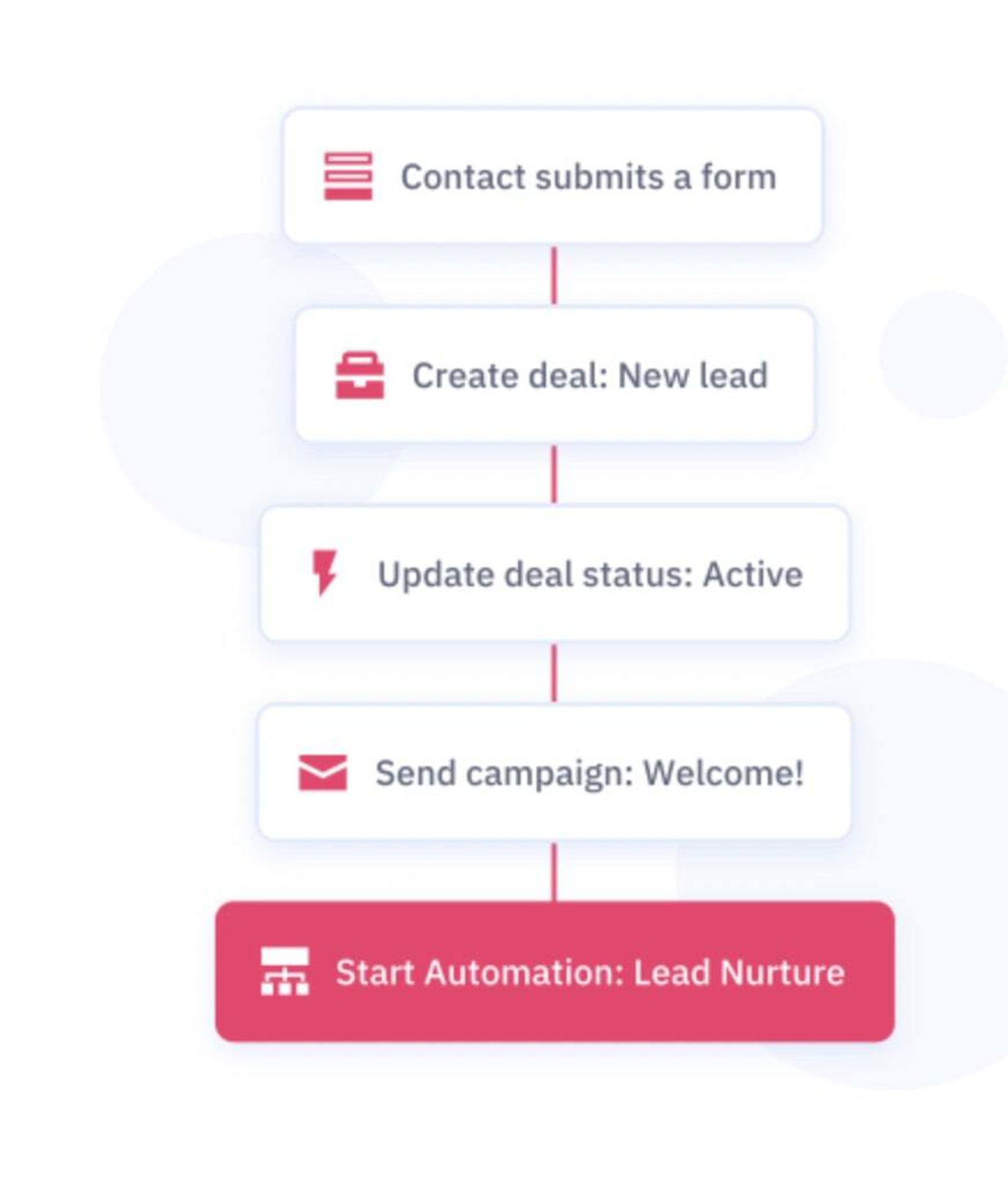 El lead nurturing va acompañado de automatizaciones que guían al lead según la etapa del embudo en la que se encuentra. Por ejemplo, utilizando las recetas de automatización de ActiveCampaign es posible realizar las siguientes tareas de manera automática: