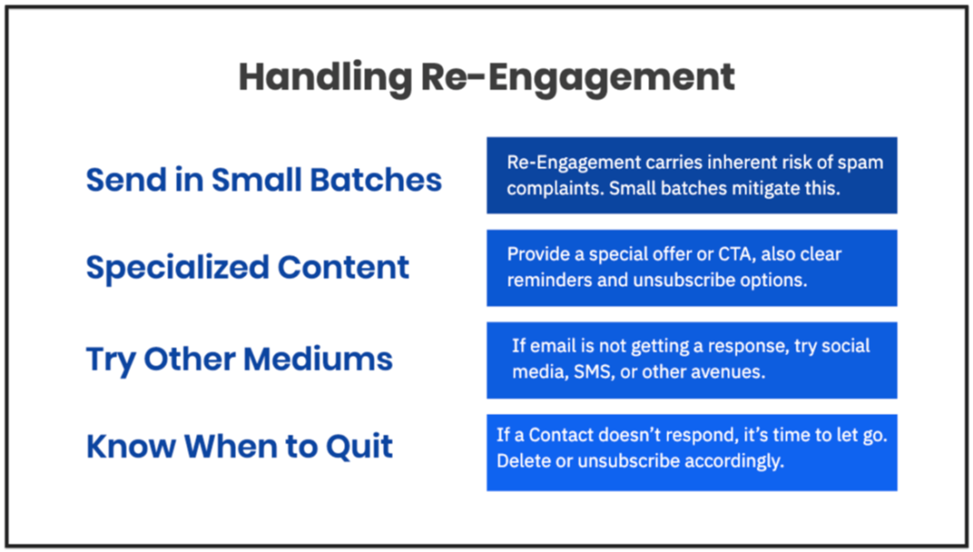 Continuar molestando a tus contactos desinteresados es una excelente manera de acumular quejas de spam y puede dañar tu entregabilidad general.