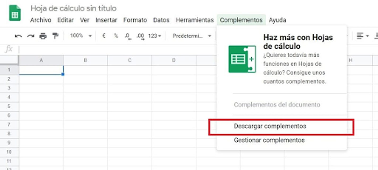 3. Haz clic en «Complementos» > «Descargar complementos».