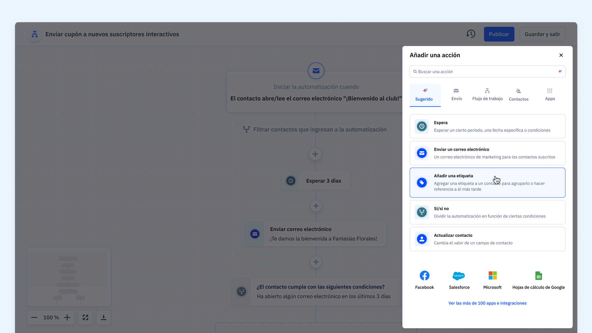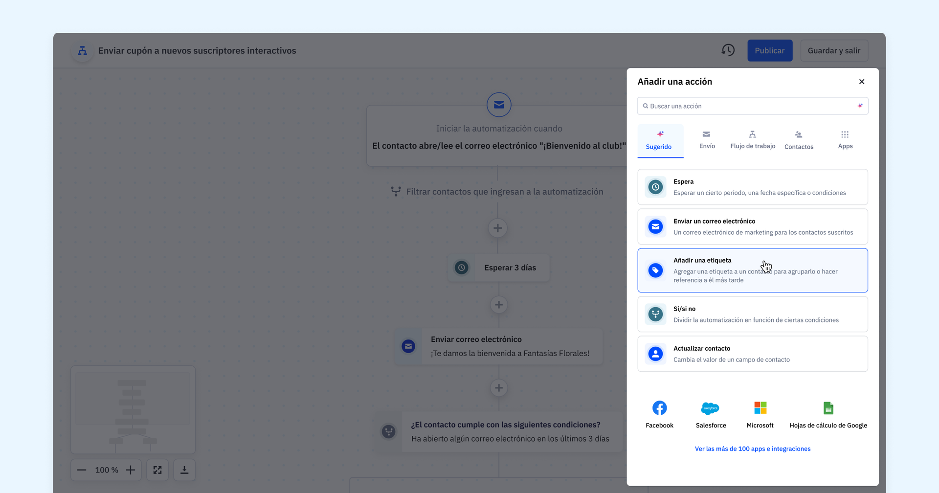 - Mejor capacidad de detección de acciones: el menú actualizado mejora la capacidad de detección de acciones, lo que facilita la exploración y selección de las acciones correctas para tu automatización, ya sea que seas un principiante o un experto en marketing.