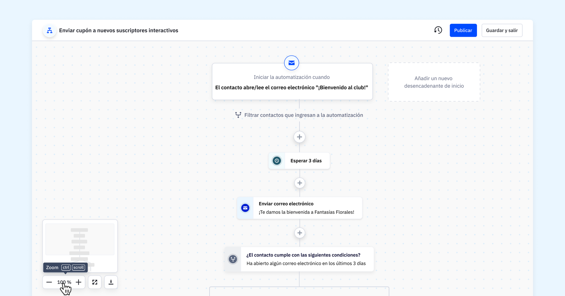 - Ajuste de la pantalla: optimiza tu espacio de trabajo con la opción "Ajustar a la pantalla", que te permite ver toda tu automatización de un vistazo.