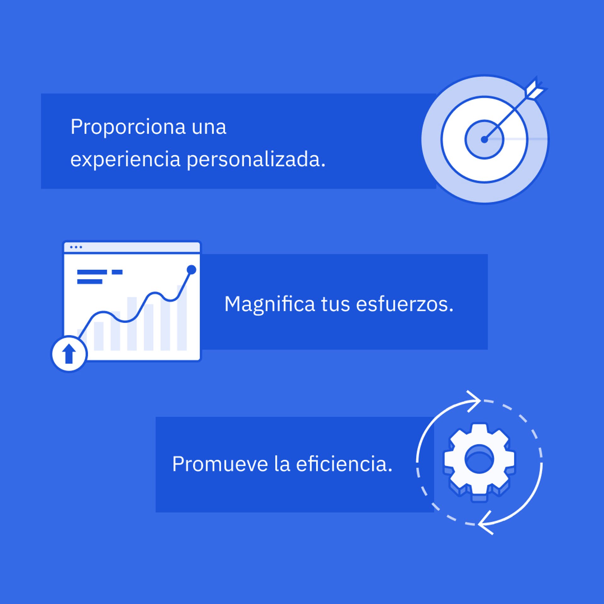 - Crear marketing automation workflows para poner a la gestión del cliente a trabajar en piloto automático, sin comprometer la personalización.