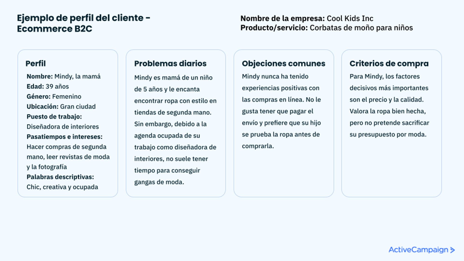 Los perfiles de compradores son representaciones ficticias del cliente ideal que permiten conocer de un vistazo los atributos que lo representan (como los retos mencionados anteriormente).