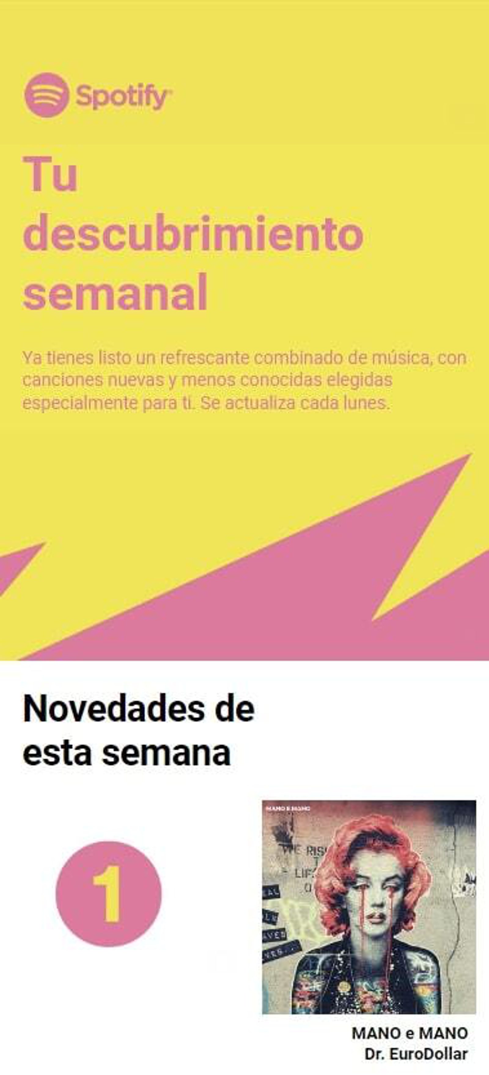 Spotify envía un email cada semana para que descubras música nueva. Fuente: Spotify.