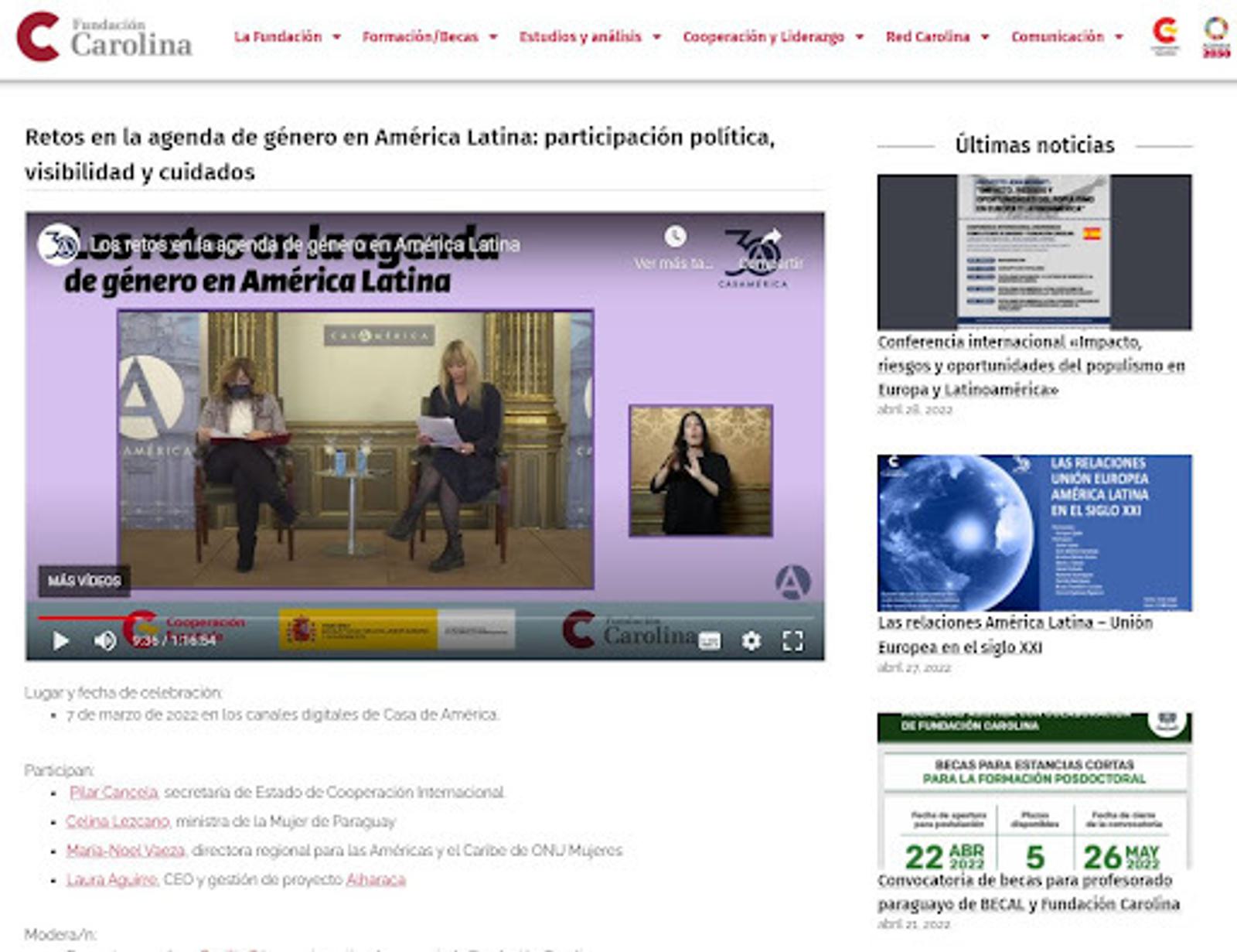 Webinar de la Fundación Carolina por el 8 de marzo. Fuente: Página web de la Fundación Carolina.