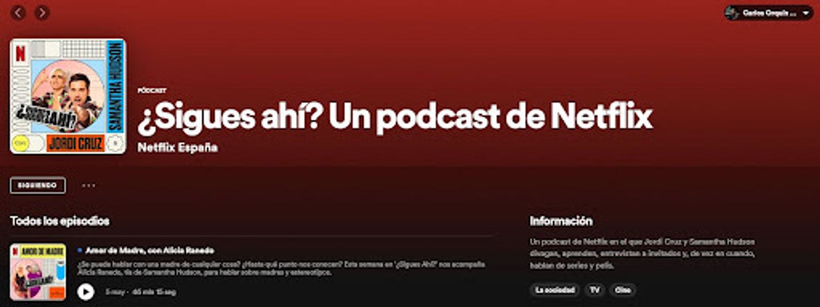 Perfil del podcast de Netflix España en Spotify. Fuente: Perfil de Netflix España en Spotify.
