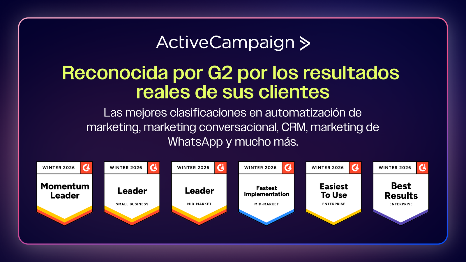 ActiveCampaign también fue reconocida como líder en 14 categorías clave en los informes de invierno 2026 de G2: