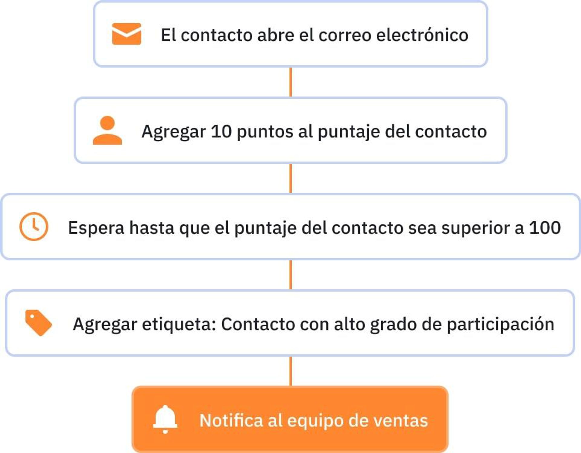 De la mano de las automatizaciones, comprenderás mejor a tus clientes potenciales, enviarás contenido para nutrir a tus leads e incluso notificarás a los equipos de venta o marketing cuando un lead alcance determinado puntaje.