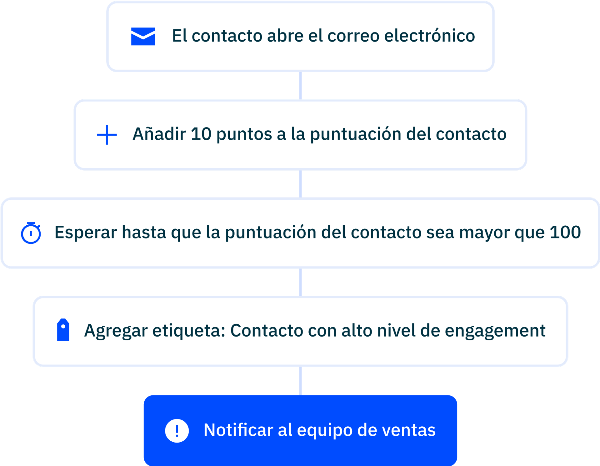 Puede sonar raro, pero las estrategias “si/entonces” son un atributo de la función de marketing automation. Por ejemplo, si una persona se une a tu lista de suscriptores, entonces ¿qué sucede? Si desconoces la segunda parte del enunciado, perderás prospectos.